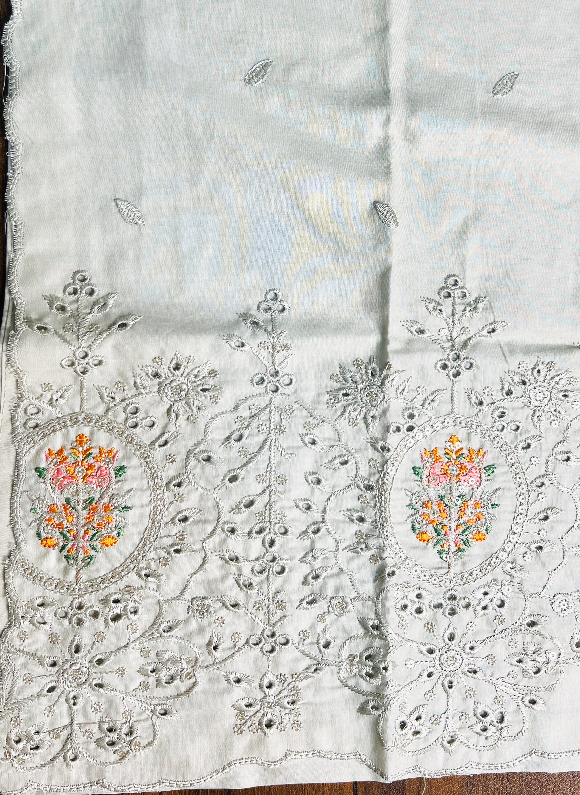 • Elegant Chikan Kari embroidery on daman & sleeves